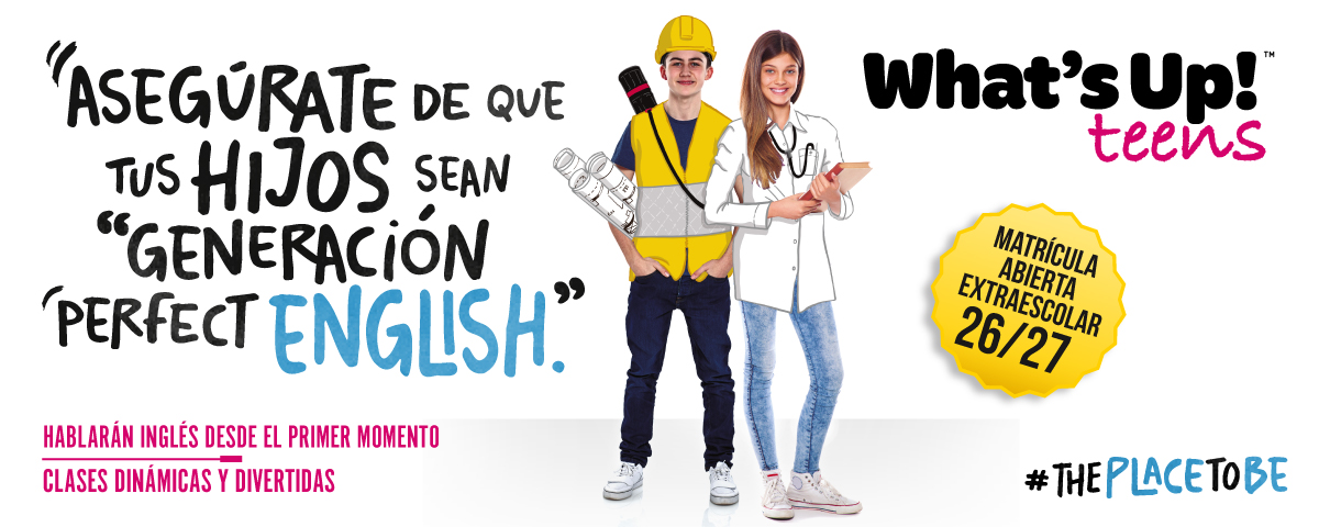 Nuestros cursos de inglés son para mayores de 18 años ya que nuestro método está basado en la conversación y en clases con temáticas para mayores de edad (debates, presentaciones, entrevistas de trabajo, juegos en grupo…). Ahora también tenemos What’s Up! Teens, el curso de inglés que sigue la misma metodología basada en la conversación pero adaptada a jóvenes de 12 a 17 años.